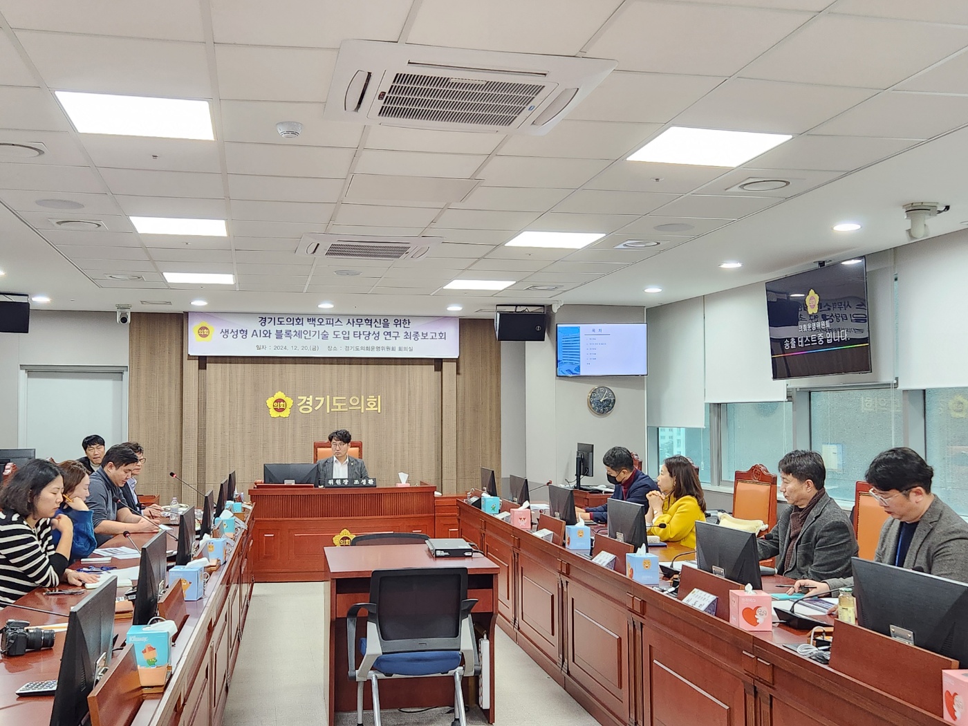 경기도의회 혁신추진특별위원회는 20일 의회운영위원회 회의실에서 “경기도의회 백오피스 사무혁신을 위한 생성형 AI와 블록체인 기술 도입 타당성 연구”에 대한 정책연구용역 최종보고회를 개최했다. 이번 연구는 경기도의회 사무처의 운영 상태를 면밀히 분석하여 업무 혁신의 필요성을 명확히 하고, 생성형 AI 및 블록체인 기술 도입의 효과와 이점을 평가하기 위해 진행되었다.