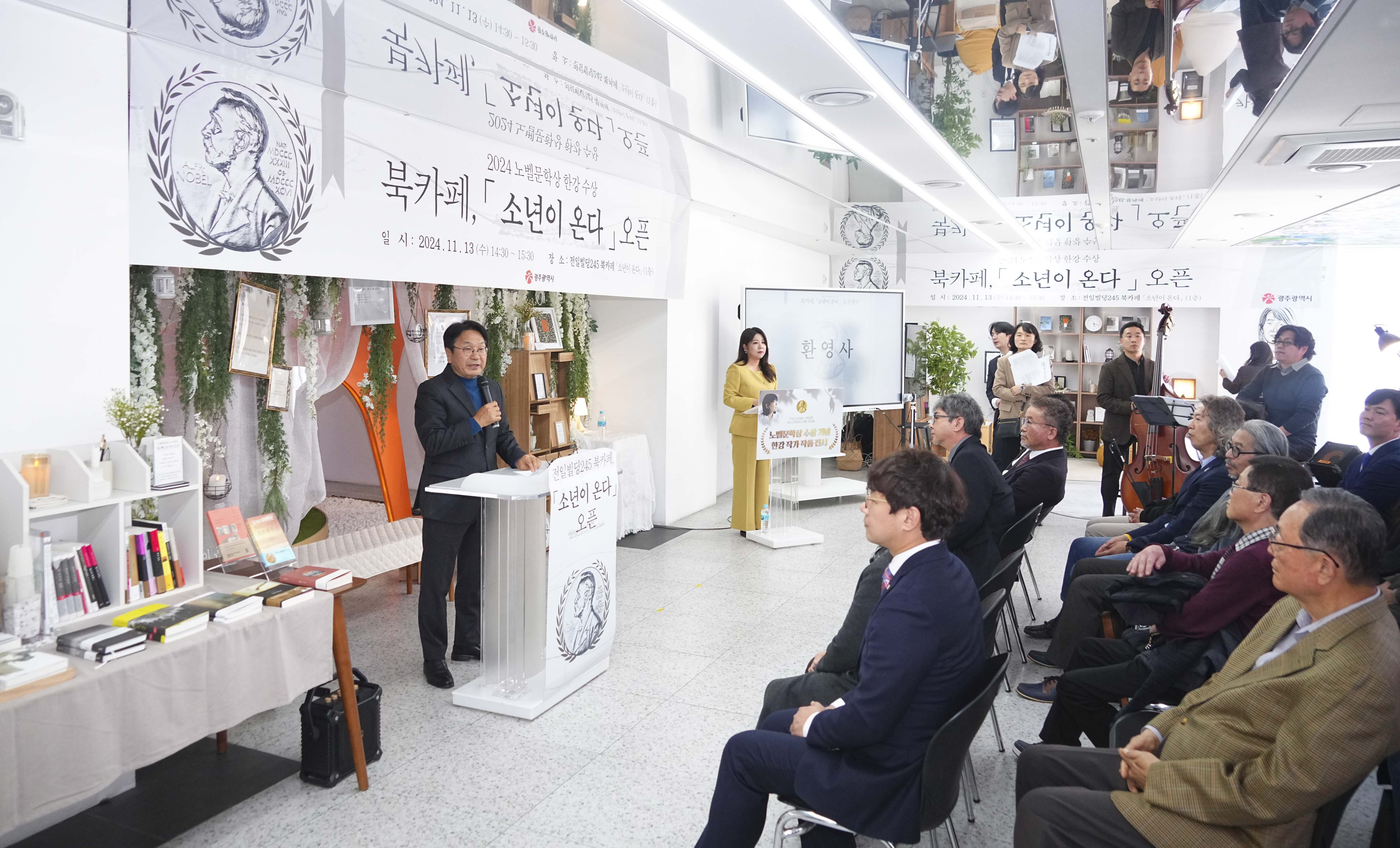 기증식은 광주광역시가 노벨문학상을 수상한 한강 작가를 기념해 마련한 미니북카페 개소식에서 진행되었다. 이 카페는 전일빌딩245 1층에 마련되었으며, 시민들이 소년이 온다를 비롯해 국내외 유명 작가들의 작품 100여 권을 자유롭게 접할 수 있도록 운영된다. 이 공간은 매일 오전 9시부터 오후 6시까지 개방된다.